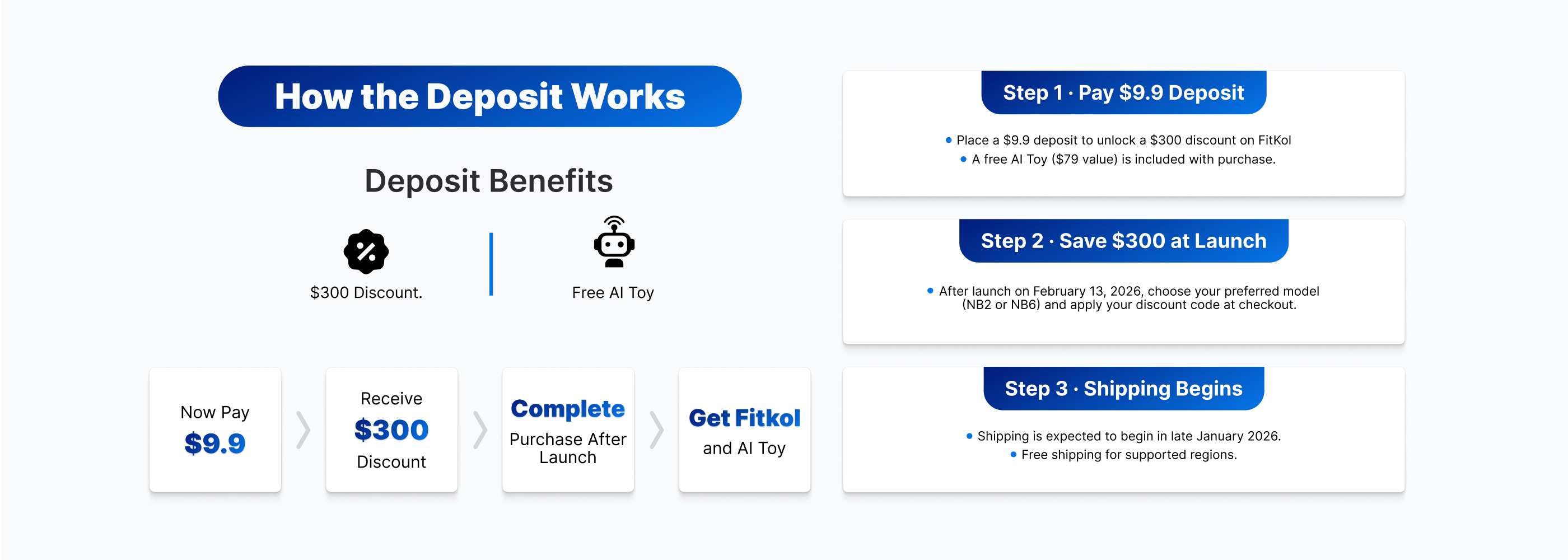 Secure your spot for the Fitkol NB series launch with a refundable deposit of just $9.90.