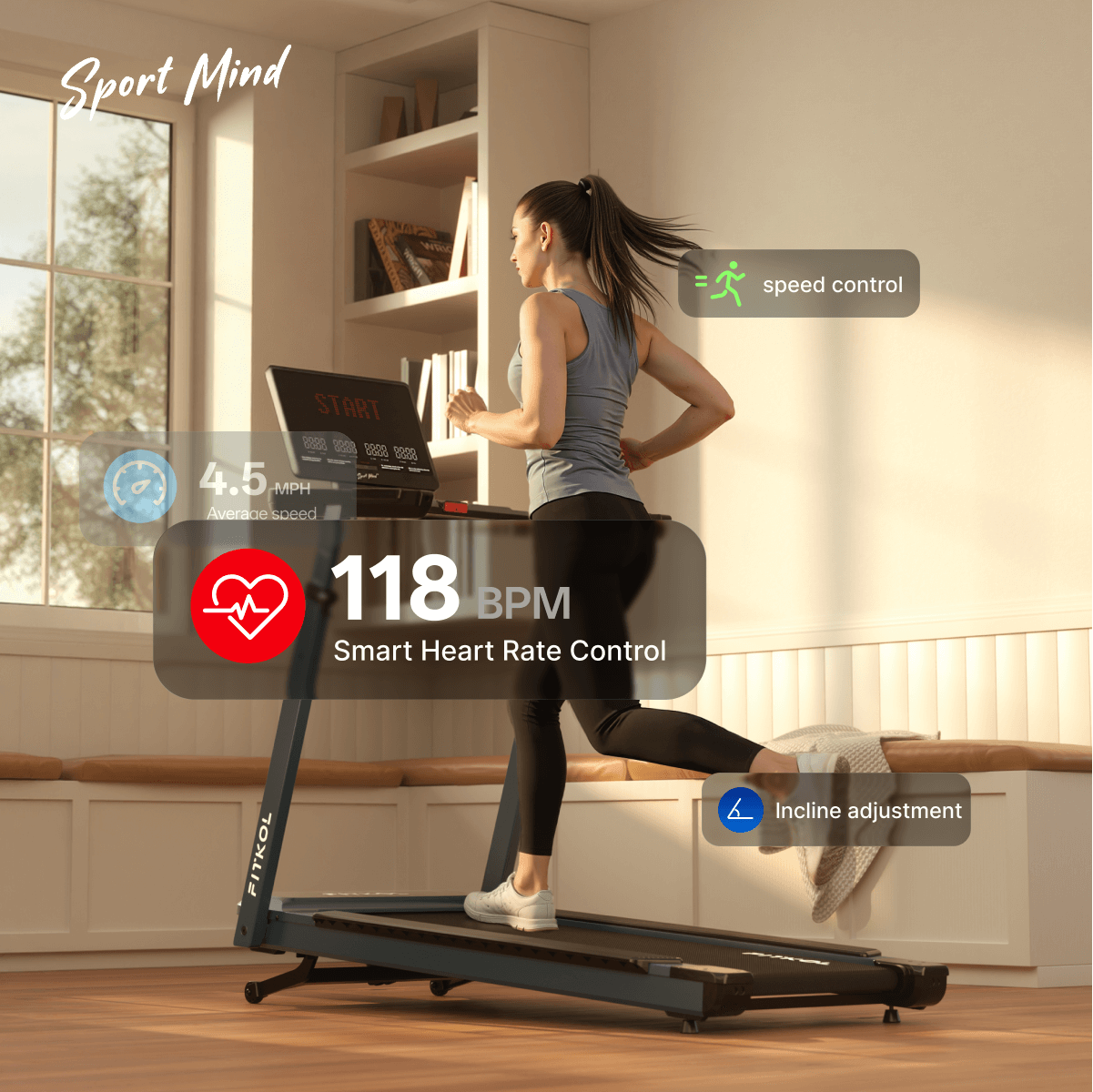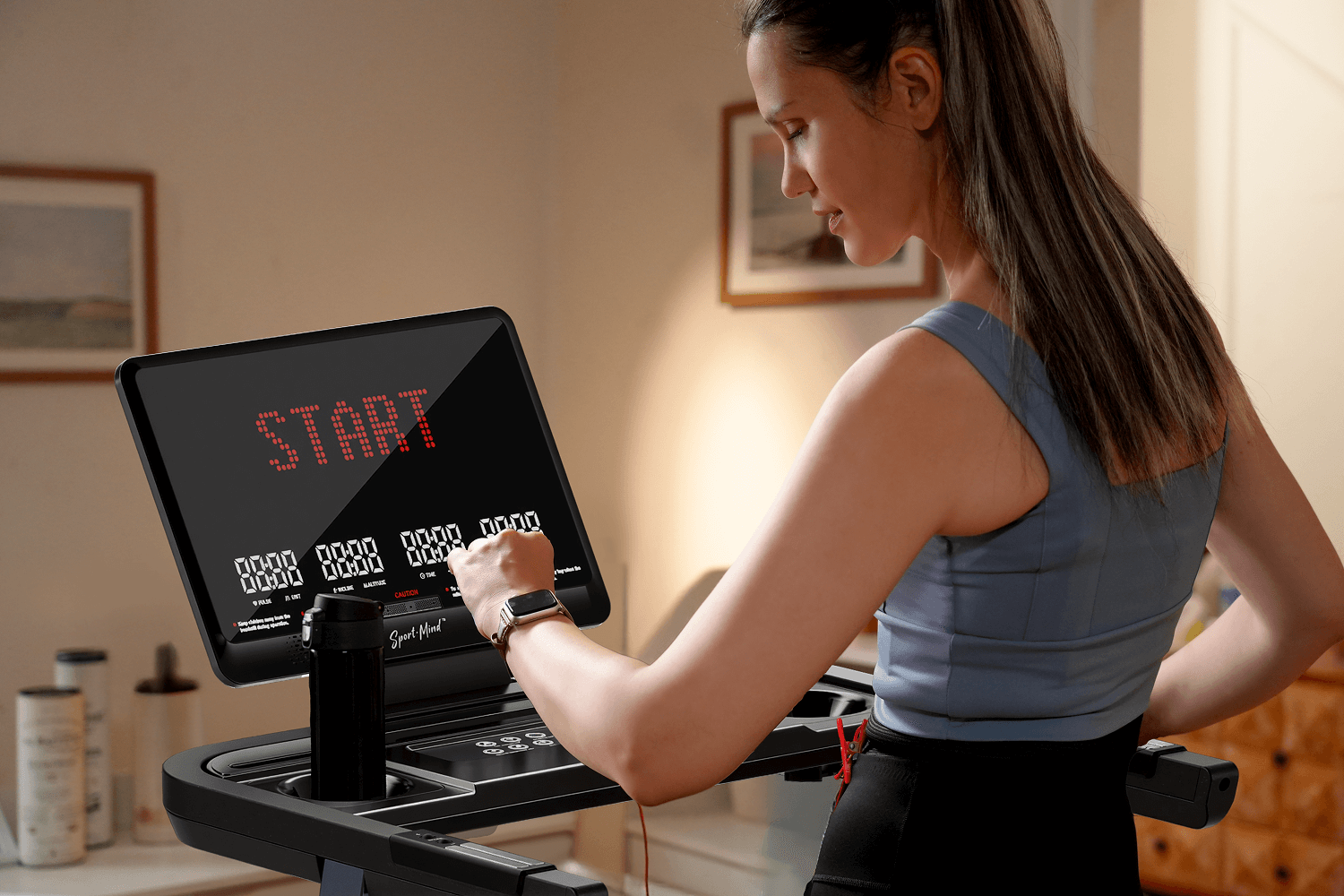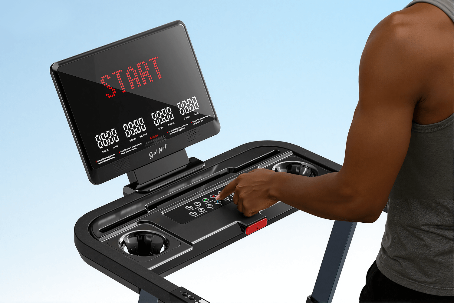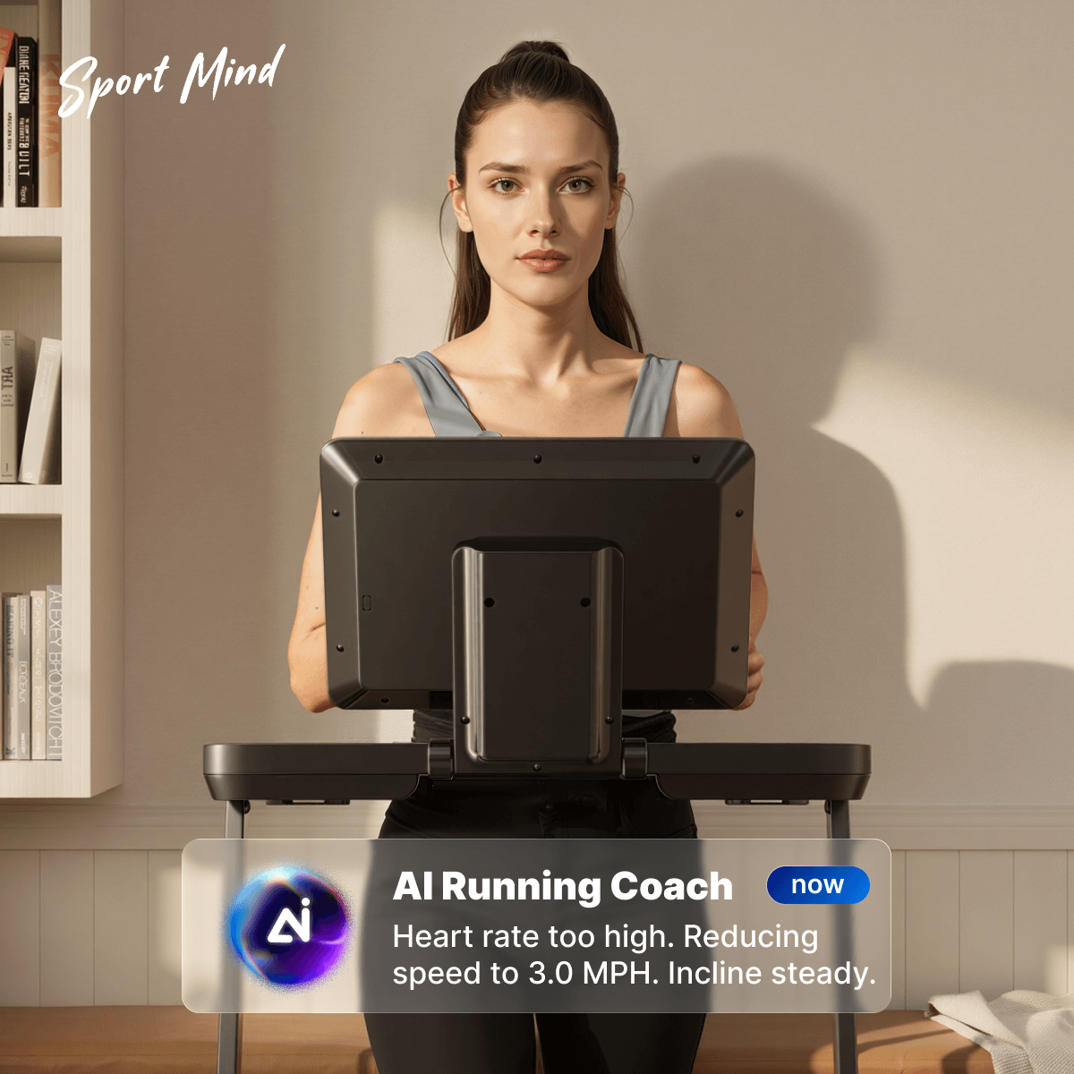 Forget complex settings. One tap activates SportMind to auto-adjust speed and incline based on your heart rate. You just run.