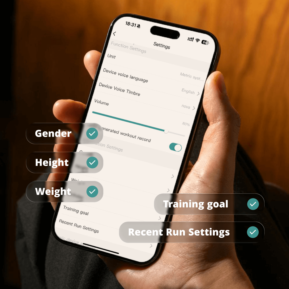 Simply wear the included watch. It syncs to your heart rate to auto-adjust speed and incline in real-time for a smooth, joint-safe run.